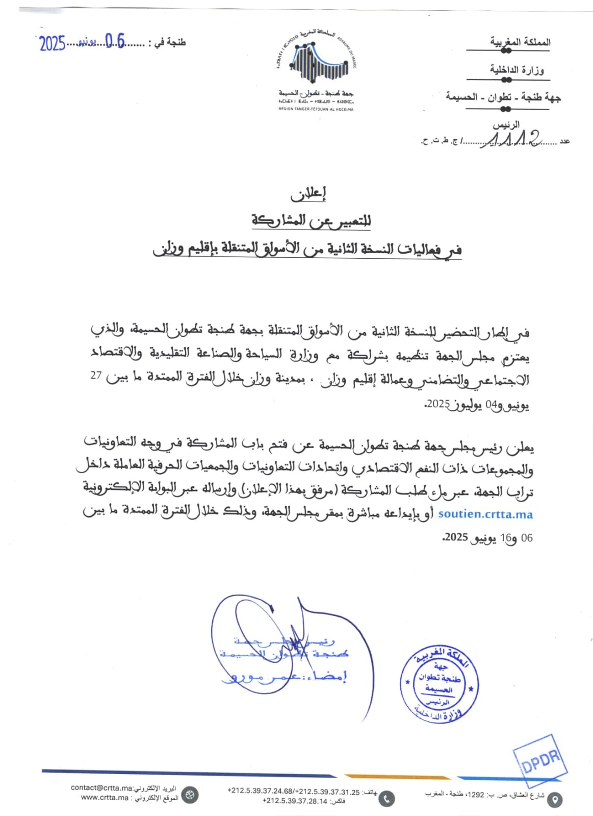 في إطار سلسلة تقديم الدعم المتعلق ببرنامج “جهات ناهضة”، شارك السيد العربي المحرشي، نائب رئيس مجلس جهة طنجة-تطوان-الحسيمة، إلى جانب السيد مهدي شلبي، عامل إقليم وزان، والسيدات و السادة عضوات وأعضاء الجهة، السيدة فاطمة الحساني، والسيدة لطيفة العابدة، و السيدة صفاء الزهري، و السيد عبد الجبار الراشيدي، وبحضور السيد عبد الرحمان الكوشي، رئيس المجلس الإقليمي، والسيد محمد الهلاوي، رئيس جماعة وزان، والسيد محمد الحويط، نائب برلماني، في عملية تسليم الدعم المندرج في برنامج “جهات ناهضة”، لفائدة النساء القاطنات بإقليم وزان، الحاملات للمشاريع الصغرى أو لصفة مقاول ذاتي.