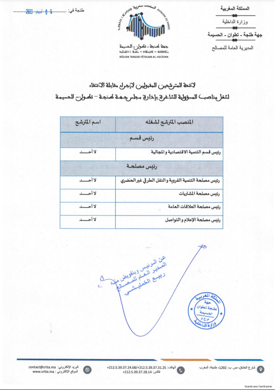 فتح باب الترشيح لشغل منصب مدير عام شركة التنمية الجهوية لإنعاش المقاولة السياحية المتوسطة و الصغيرة والصغيرة جدا طنجة تطوان الحسيمة