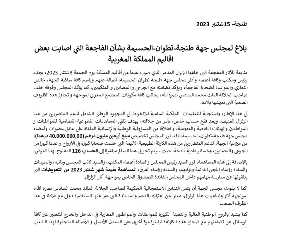 اختتمت صباح يوم الأربعاء 20 شتنبر 2023، بمقر مجلس جهة طنجة-تطوان-الحسيمة، اجتماعات اللجان الدائمة، بانعقاد الاجتماع التحضيري للجنة الميزانية والشؤون المالية والبرمجة، تحت رئاسة السيد محمد […]