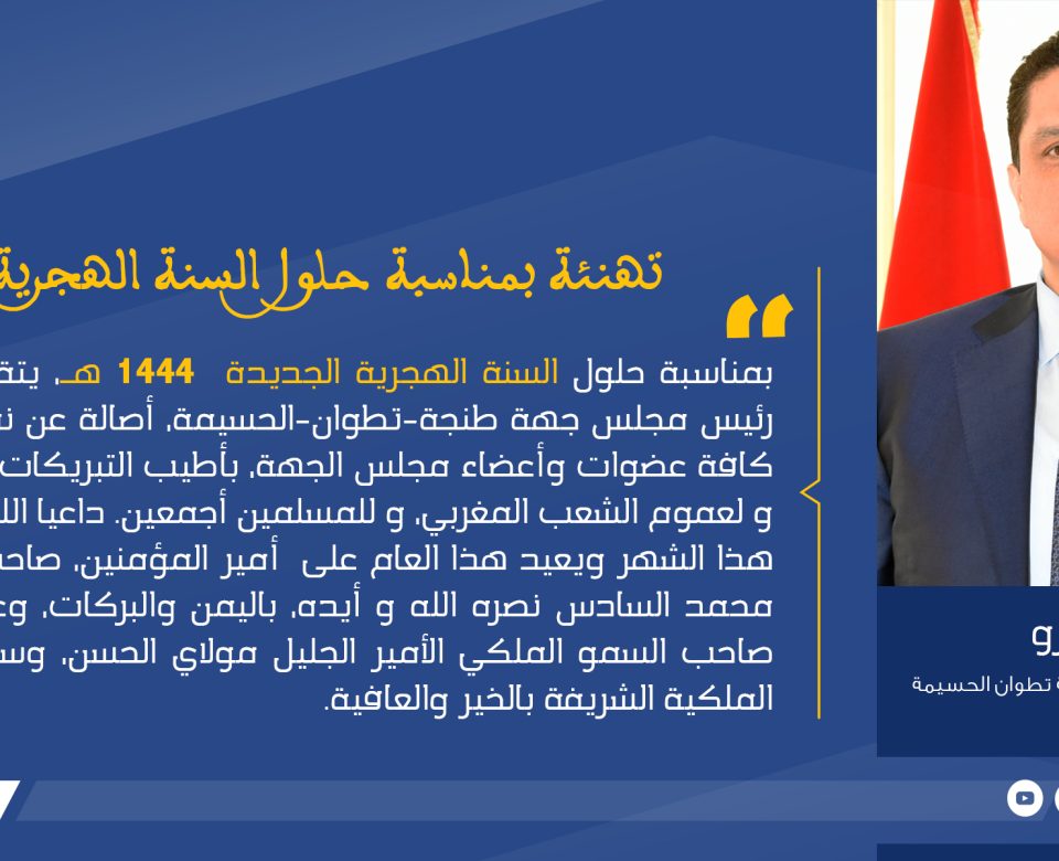 تهنئة بمناسبة حلول السنة الهجرية الجديدة بمناسبة حلول السنة الهجرية الجديدة 1444 هـ، يتقدم عمر مورو، رئيس مجلس جهة طنجة-تطوان-الحسيمة، أصالة عن نفسه، ونيابة عن كافة […]