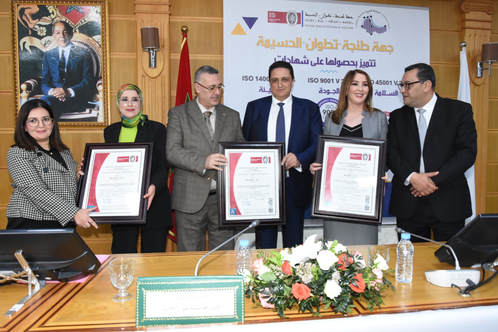 حصول مجلس جهة طنجة تطوان الحسيمة على شهادات: ISO 9001 vr 2015 وISO  14001 vr 2015 وISO 45001 vr 2018 لتدبير الجودة والبيئة والصحة والسلامة